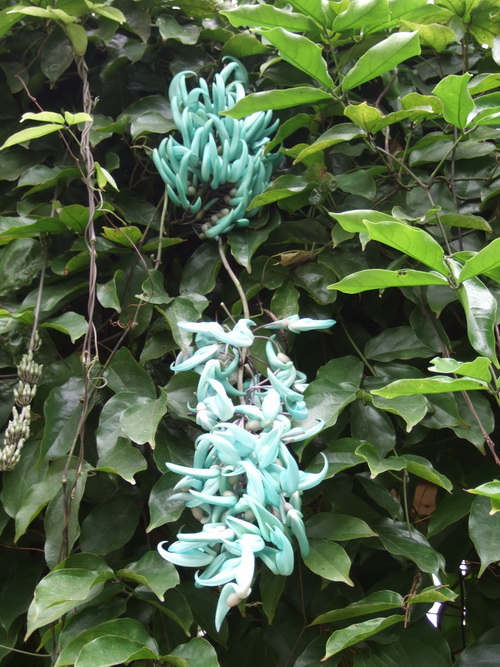 翡翠葛生于菲律宾的热带雨林中,不耐霜冻,喜全光照,是一种优良的绿化攀援植物。