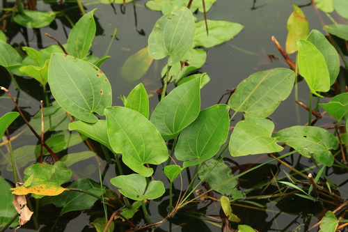 大叶皇冠草(Echinodorus macrophyllus)是泽泻科皇冠草属多年生水生草本植物,株高约50-70厘米,叶心形,长10-20厘米,宽6-10厘米,叶柄长5-15厘米,叶与叶柄等长或稍长,叶柄有刺;花白色,在广州可全年开花;原产圭亚那、巴西西部至阿根廷,现中国各地有栽培。
