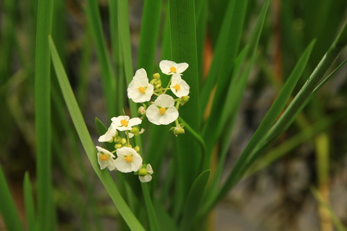 泽泻慈姑(Sagittaria lancifolia)是泽泻科慈菇属多年生水生草本植物,根状茎匍匐,白色。沉水叶条形,丝带状;挺水叶长卵形至长披针形,青绿色,叶柄长30-50厘米。花葶高60厘米,直立挺出水面,花白色,每朵花瓣三枚,花果期3-11月。原产中美洲及南美洲北部,生于湖边、池塘、溪流、及积水湿地中,是一种稀有的沼泽植物,现国内有引种栽培。
