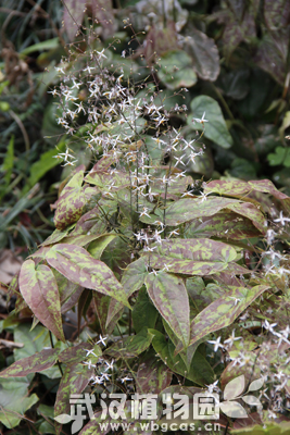 淫羊藿,拉丁学名Epimedium brevicornu,为小檗科淫羊藿属的多年生草本植物,叶片薄革质,卵形至长卵圆形,先端尖,边缘有细齿,侧生小叶基部斜形,上面幼时有疏毛。总状花序,花期4-5月。