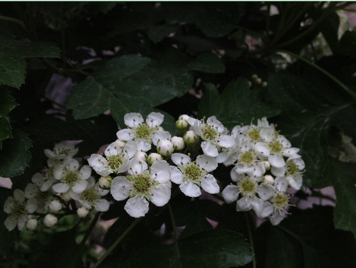 近日,上海辰山植物园(中国科学院上海辰山植物科学研究中心)岩石药用园内几株山楂树(Crataegus pinnatifida),进入了盛花期,满树的洁白的小花,远远看去就像一朵朵白云漂浮在空中。