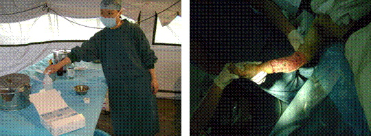 2008年5月12日,四川汶川发生里氏8.0级大地震,西安第四军医大学抗震救灾医疗队受命于5月14日,赶赴四川安县灾区建立野战医院,实施紧急救治。根据以往地震灾害救治经验,因灾区恶劣自然环境和救治条件所限,地震掩埋所致肢体开放性损伤早期极易引起感染、组织坏死腐烂,往往因为救治超时限而导致感染扩散、截肢、甚至危及生命。根据近年来土耳其Marmara地震、巴基斯坦Kashmir地震中的经验,四肢伤的截肢率达20%的数据,5.12大地震的截肢率也将很高,如何更科学和积极的挽救伤员的肢体、提高灾区一线救治的保肢率,是摆在地震灾害救治领域的一个特大难题。