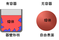 空间材料科学,作为空间科学与应用领域中的重要分支,是传统的材料科学向空间环境下的延伸,是发展材料科学新理论、探索材料制备新工艺和拓展材料应用新领域中最活跃的前沿性交叉学科之一。空间具有微重力、超真空、无容器和强辐射等特殊效应,是研究材料熔融、凝固等的理想实验条件,但是,人们迄今所能利用的空间资源仍然十分有限。因此,模拟空间环境中各种效应的地面方法应运而生。悬浮技术就是其中之一,它可以模拟空间环境中的无容器状态。悬浮无容器技术就是利用外界物理场产生的作用力来抵消物体的重力,从而使物体处于一个无接触、无容器的状态。它避免了坩埚对材料表面的接触与污染,能够抑制异质形核,获得深过冷,是制备高纯亚稳态新型功能材料的有效手段。图1是有容器和无容器技术凝固过程示意图。悬浮无容器技术主要有声悬浮、静电悬浮、磁悬浮、光悬浮、电磁悬浮和气悬浮等方式,下面简单介绍下几种常用的悬浮技术。