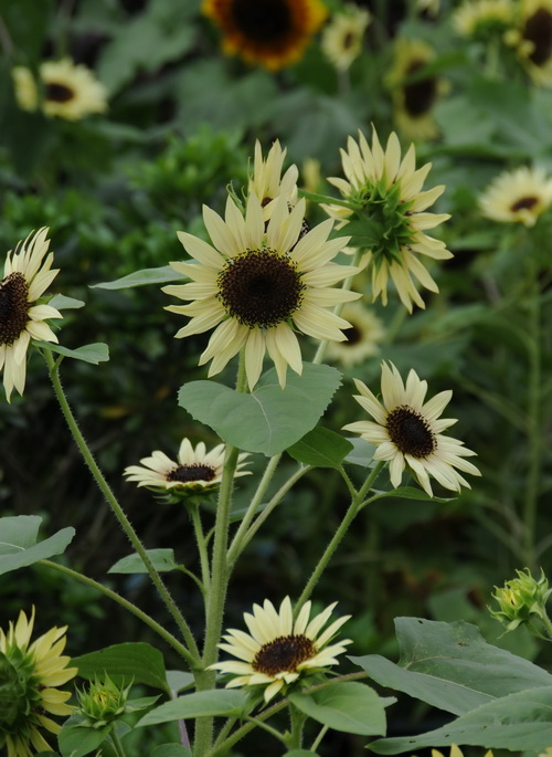 慕天子(Helianthus ‘Procut Lemom’):米黄色的花瓣搭配深色的花盘,总是显得高高在上,于是才有了这个霸气的名字。单杆,花朵直径12厘米,株高150厘米,成熟期55天,非常适合做切花和庭院栽种。