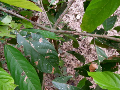 西双版纳热带植物园经济植物实验推广站在环境友好型胶园项目中,种植了近五百亩的可可林试验样地,其中在葫芦岛上种植有近50亩的“橡胶+可可”复合模式试验地,当那片橡胶日益老去之时,也正是可可茁壮成长之际。