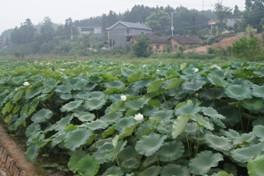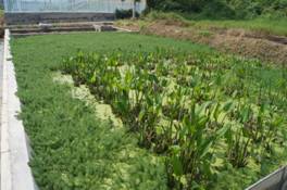 | 图1. 狐尾藻-梭鱼草植物湿地 | 图2. 莲藕经济湿地 |