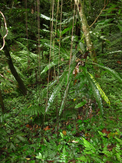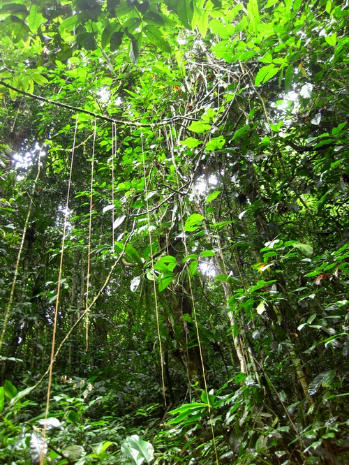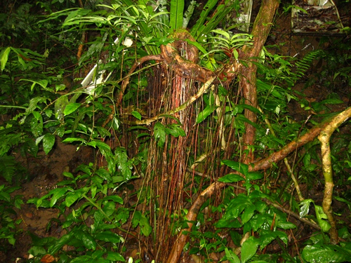 在温暖、湿润的热带丛林中,有气生根的植物比比皆是,而最常见是生长在空中的下垂呼吸根,它们是气生根的一种类型。鸭跖草、禾本科、使君子科、防己科、木樨科、天南星科、棕榈科、杜英科、茜草科、葡萄科、桑科、芭蕉科、荨麻科等科的植物都会产生此类根,它们从茎杆、愈伤部分生出,有些悬挂于林间空旷处,婉如延绵不断的丝雨。那景观难以用语言形容,真令人叹为观止。