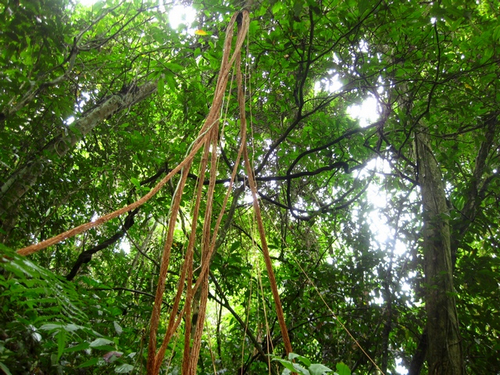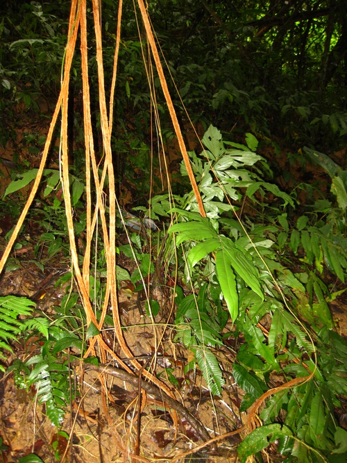 观察这类气生根,其种类多以藤本、灌木、草本居多。可以根据其特征来识别不同种类植物,总的来讲,雨水充足的年份,这些根产生数量越多。同一种类在空旷、光照充足、湿润地方比其他环境发生几率明显增大。不难看出,下垂的气生根即便来自空中,也会抽长生长下沿,最终回到土壤的怀抱。如同人类一母所生的儿女,生长发育过程有高矮、胖瘦、羸弱,甚至夭折的情况,并不是所有呼吸根都发育良好,全都能回归土壤,它同植株母体自身因素及外界环境条件息息相关。