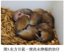 (亚成体〕体重标准为35g,历时约2个月;雄性发育历程稍长于雌鼠。雄崽20日龄前体重小于雌崽,41日龄后明显超过雌性。在湖区全年繁殖,年均怀孕率33.0%,每胎胎仔数最少1只,最多9只,总平均胎仔数为5.14只。这项指标低于褐家鼠(总平均胎仔数8.13只)。但东方田鼠在湖滩草地栖息时也能接连生殖,调查中不时可见一个巢穴内共存2窝仔鼠,一窝10克左右,另一窝初生,这与褐家鼠类似。总观其繁殖力,在鼠类中也居前列。