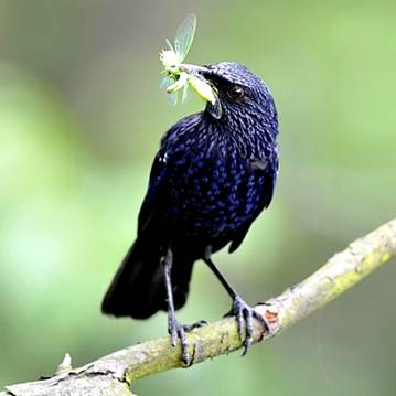 台湾紫啸鸫在当地被称为“琉璃鸟”,全身靛蓝色,肩羽有紫蓝色金属光泽,尾羽为黑色,在阳光照耀下闪烁着令人目眩的光泽,非常美丽,但仅凭外表不能判断性别。其全长约31厘米,在我国台湾的常见溪涧鸟类中,它是体型最大的。