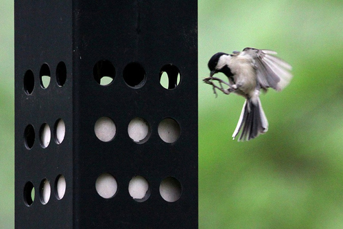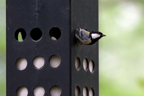 植物园有很多的路灯,其中一种是金属的,中空,外壁有很多小孔,非常小的小孔。有只大山雀忽然朝路灯杆直飞过来,眼看就要撞在上面,但忽然它收了翅膀,沿着小孔,飞进了路灯杆的里面。大山雀真是一个高明的飞行者,但它飞到路灯杆里面做什么呢?如果你凑近静静的听一会儿的话,就会明白原因。因为你可以听到小鸟的叫声。原来路灯杆里面有大山雀的窝,并且在里面孵育小鸟。路灯杆就是大山雀的家!