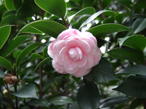 冬天,华南植物园内开的最灿烂的当属山茶园中的各种茶花了。山茶园占地面积约60亩,种植茶花150多种,分为山茶花区、金花茶区和茶梅区。花瓣鲜红如火的金盘荔枝、越南抱茎茶、新宁油茶、十八学士、宛田红花油茶、达婷;花瓣娇羞粉红的宫粉茶、情人大卡特;花瓣晶莹雪白的东方亮;玫瑰红的香神、红牡丹;红白相间的一点红、鹤顶红;金黄色的金花茶等。茶花与绿叶交相辉映,如闪烁于绿色天幕之中的五彩繁星。