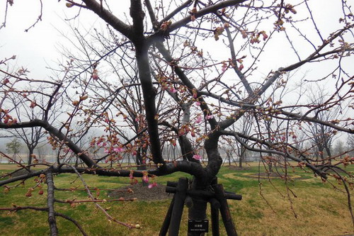 近日申城的天气阴雨连连,但是初春的寒意并不能阻挡樱花开放的脚步,中国科学院上海生命科学院上海辰山植物园(中国科学院上海辰山植物科学研究中心)樱花园旁赏樱大道两边的几株河津樱已经迫不及待地展露出鲜艳的粉红色花蕾,根据往年的物候观察记录,预计在今年3月初进入初花期。