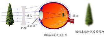 青少年的眼球,正处于生长发育阶段,调节能力很强,球壁的伸展性也比较大,阅读、写作等近距离工作时的调节和集合作用,使眼外肌(主要是内直肌)对眼球施加一定的压力,眼内压也相应升高,随着作业的不断增加,调节和集合的频度和时间也逐渐增加,睫状肌和眼外肌经常处于高度紧张状态,调节作用的过度发挥可以造成睫状肌痉挛,从而引起一时性的视力减退。但经休息或使用药物后,视力可能改善或完全恢复。因此,有人称这种近视为功能性近视或假性近视。但巩膜组织在眼外肌的长期机械性压迫下,球壁逐渐延伸,眼轴拉长,近视的程度也越来越深,而且不能再被阿托品等所缓解,这种被称为真性近视。特别是青少年时期,不注意视觉卫生是形成近视眼的直接原因。不注意全身健康更能促使近视眼的发展。