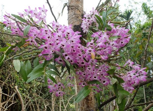 每年的三四月份是石斛盛开的季节,欣赏石斛花自然也成了春天我最期待的乐事之一。 3月,西双版纳热带植物园荫生园的金钗石斛又开始绽放了。那一串串粉白色的石斛花,它们象一只只飞舞着的蝴蝶穿梭在各树枝、树叉上,为荫生园增添了不少动感的色彩。金钗石斛的颜色比一般石斛更加醒目,更加诱人,花期也相对要早。这些石斛每天都吸引了一批批前来版纳植物园写生、摄影及游玩的人群,他们不约而同地聚集到荫生园,有不停按着快门的、有三三两两坐在花前进行创作的,有三五成群评头论足的,这些金钗石斛俨然成了荫生园里最美的那抹亮色。