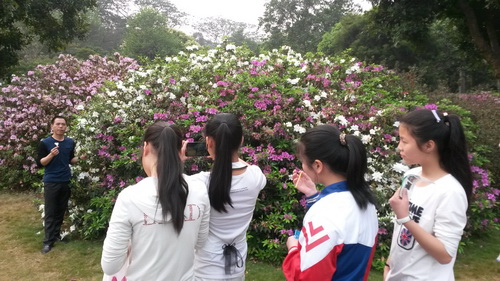 阳春三月的广州,气温宜人,华南植物园内的杜鹃花也耐不住寂寞开花了。一入正门,就能看到一大片映山红开得格外灿烂,火红的颜色,在湖光碧水的衬托下,显得格外鲜艳夺目,过往的游客无不驻足观赏,拍照留影。在杜鹃园及中心大草坪,粉的似霞、白的似雪、红的似火的150个杜鹃花品种开满山坡湖边,花里还带着些甜味儿,混着草青味在微微润湿的空气里酝酿,映得山坡湖水姹紫嫣红一片。