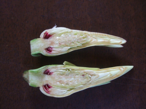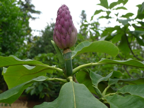 三瓣木兰,乔木,叶片大,厚,花白色,花期:3-4月份,花似瓶状,具异味。聚合果卵形,圆柱形,幼时绿色,随成长渐变为红色,至9月成熟时呈紫褐色。种子约长1厘米。