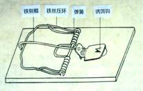 才能奏效。通常,捕鼠箱内可放谷物作诱饵。鼠夹、鼠笼的诱饵则需能扣挂上诱饵钩(图2)并要有较强的吸引力,一般可用厚仁白瓜籽、葵花籽、花生米;对褐家鼠,也可用猪油渣、熟肉皮、油条;对黄胸鼠,宜用红薯条、马铃薯块、苹果条等。