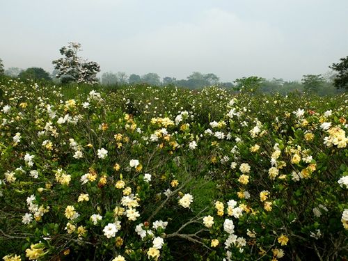 四月的西双版纳热带植物园,绿树成荫枝叶繁茂,各种花木相争艳,栀子花也在绿叶的簇拥下散发出缕缕的清香。步入植物园,你就会感受到空气中飘着一股淡雅似茶的清香,这股清香就是来自茜草科植物栀子花,它是一种多年生常绿灌木,每年四五月份盛花,洁白的花朵为炎炎夏日增添了几分清凉。