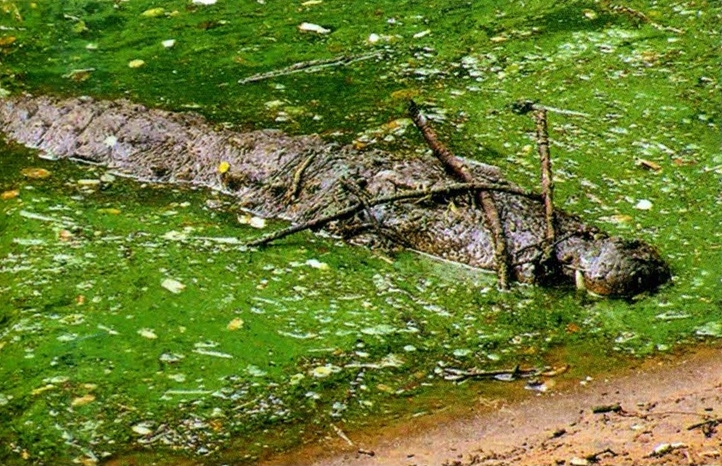 【用树枝诱捕鸟的鳄鱼(图/Vladimir Dinets)】