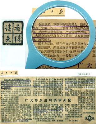 图1. 人民日报1982年10月9日刊登的读者来信综述:长江南北发生严重鼠害