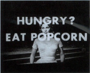 我对此表示怀疑。首先,潜意识编程这一概念可以追溯到20世纪五六十年代,当时一位搞市场研究的学者詹姆斯?维克里(James Vicary)报道了一个非常著名的实验,他本人开了一家公司,名为“潜意识映射有限公司”。维克里对美国新泽西一家影院的观影者进行了为期6周的实验,即在影片播放过程中插入两条信息,信息的显示只有3/1000秒,时间是如此之短以至于观影者实际上看不到这些影像。但是,在整场电影中,该信息每隔5秒钟就重复一次。两条信息分别为“吃爆米花”和“喝可口可乐”。实验持续6周,有45000名观影者观看了含上述插入信息的电影。这位科学家比较了实验开始前6周和实验进行中爆米花和可口可乐的销售量,来评价这种方式的插入信息到底是否能改变人们的行为。这些潜意识的信息非常显著地使可口可乐的销量增加了18.1%,爆米花的销量则惊人地增加了57%。