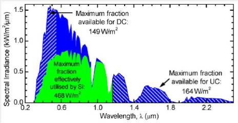 图4 太阳能光谱与硅的吸收光谱特性(绿色标注)