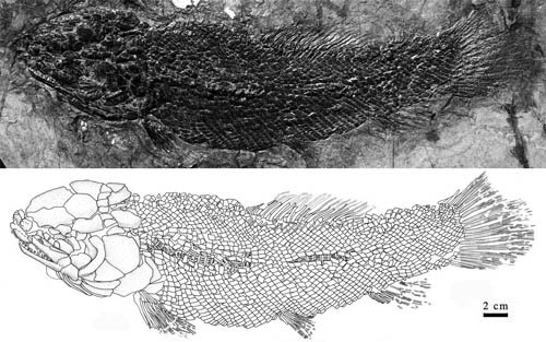 据研究人员介绍,新材料具有中华弓鳍鱼科的3个定义特征:单一的顶骨,三对额外肩胛骨和膜质翼耳骨短并与顶骨等长,无疑应归入该科。新种的后眶下骨较小,背鳍长大,鳞片菱形,因此,归入中华弓鳍鱼属。