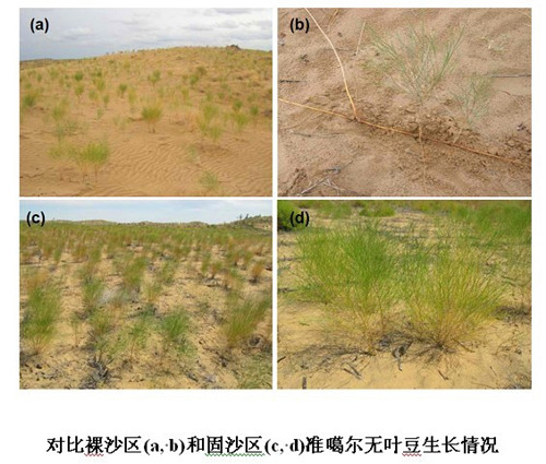 准噶尔无叶豆(Eremosparton songoricum)是中亚稀有克隆半灌木植物,分布在流动-半流动沙丘上,对维护沙丘稳定有重要作用。中国科学院新疆生态与地理研究所张道远课题组对沙丘稀有物种的受胁机制开展了多年的系统研究。近日,课题组成员刘会良博士有关准噶尔无叶豆原地保护措施及评估研究取得了新进展。