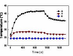 U盘数据传输过程中采用金属相变机理冷却后的效果(对应曲线B)