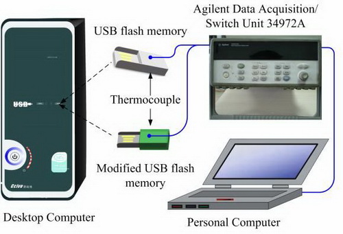 进一步地,研究小组还将上述方法扩展用于冷却高速数据传输中的U盘、闪存及固态硬盘等(H. Ge, J. Liu, Phase change effect of low melting point metal for an automatic cooling of USB flash memory, Frontiers in Energy, 6: 207–209, 2012)。实验证实,设置有金属相变材料的U盘在运行中由原来的42°C降到了28°C并能维持1刻钟以上,显然,较低的工作温度一方面保障了数据传输的可靠性,也延长了U盘的使用寿命。事实上,对于更大功率如数十瓦的瞬态发热设备,研究还表明,金属相变冷却技术的优势更加明显,系统热响应时间可呈数量级缩短,而散热装置体积则减小数倍,且加工工艺得以大为简化。此外,理化所的工作也揭示出,低熔点金属相变吸热方法还易于与风冷、热管或水冷方法相结合,由此提升电子设备的抗热冲击性能,这在许多计算机超频应用中有独特价值。除电子设备外,低熔点金属相变热管理方法在更多光电器件,以及太阳能、风能、潮汐能等间歇式能源的高效储存,乃至建筑保温节能、人体热舒适、特殊功率电力电子设备领域,也有得天独厚的优势。理化所已围绕有关应用形成了技术专利。