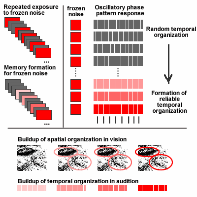 随着对白噪声记忆的建立,大脑逐渐产生稳定的时间分割反映模式,即时间组织上的稳定化,类似于视觉学习中空间组织的建立。