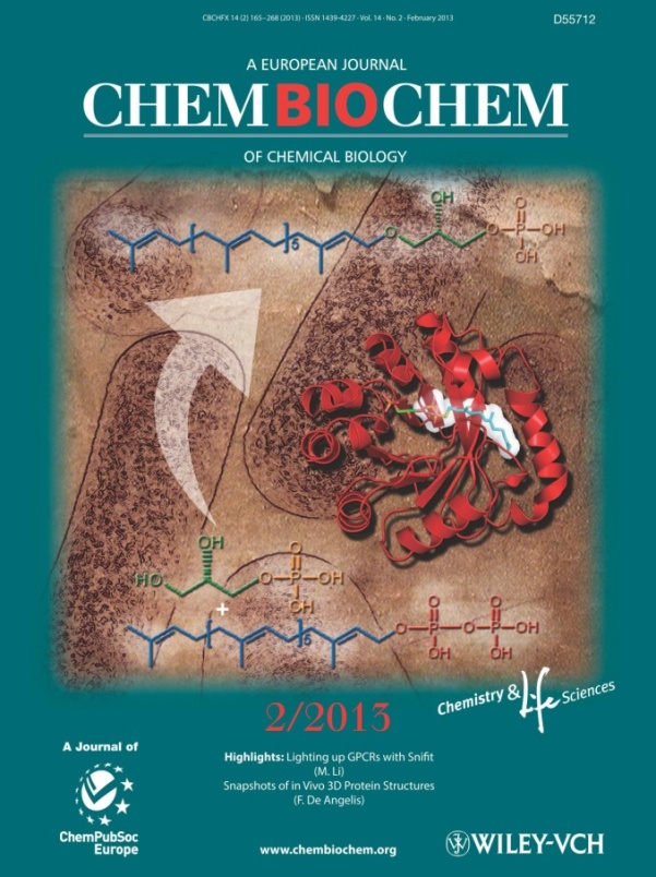 该研究为新药物靶点及其抑制剂的开发提供了方向,研究成果已经被ChemBioChem(14: 195-199)接收,并获选为重点封面文章(Highlight Cover Figure)。