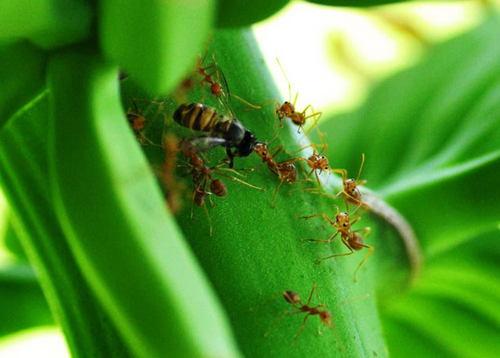黄猄蚁合力捕获蜂类(Francisco Gonzálvez摄于XTBG)