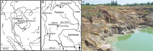 在泰国那空叻差是玛省的塔昌地区,此前在几个采砂坑中发现过哺乳动物化石。该地区位于曼谷东北220公里的呵叻高原上,砂坑分布于孟河岸边,其沉积物由未固结的泥岩、砂岩和砾岩组成。化石主要由采砂坑的工作人员收集,并提供给那空叻差是玛皇家大学等机构,也有由古生物学家进行科学发掘取得的材料。在这些化石中,2004年报道了人科的呵叻古猿,使塔昌化石地点引起广泛关注,但化石层位的年代很难精确判断。