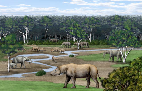 图4 披氏无角犀生态环境复原(陈瑜绘)