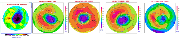 图4:FY-3/TOU 对南极臭氧洞连续五年的监测(2008-2012)