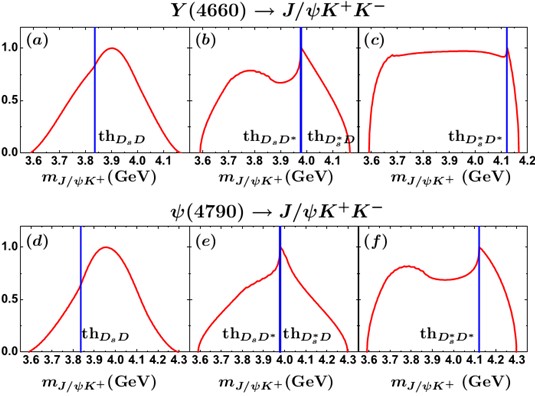 图 在初态单手征粒子机制下计算得到的Y(4660)/ψ(4790)→J/ψ K+K‑过程J/ψK+的不变质量谱
