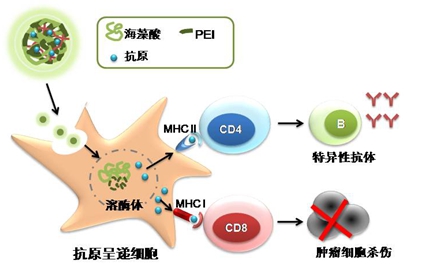 中国科学院深圳先进技术研究院马轶凡博士研究组长期从事纳米疫苗研究,立足于安全可降解纳米材料,开创新的思路,设计了一种基于海藻多糖的新型纳米疫苗载体。这种多糖纳米颗粒不仅能高效安全地将蛋白抗原递送至免疫系统,还可以通过调控抗原在细胞内的释放过程,提高机体的特异性抗体水平和抗肿瘤免疫反应。这一成果为研制高效的抗肿瘤疫苗提供了重要策略。