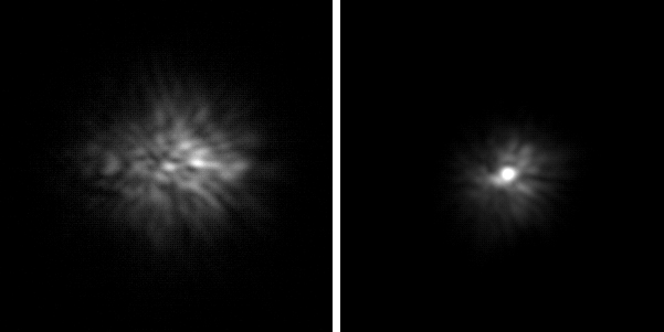 图1 恒星Arcturus经过PAO校正前后图像: AO off(左), AO on(右)