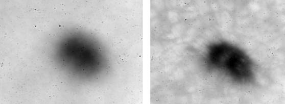 图2 编号为1787的太阳黑子经过PAO校正前后图像: AO off(左), AO on(右)