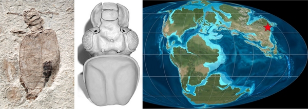 侏罗甲化石、头部和前胸背板三维模型及古地理分布