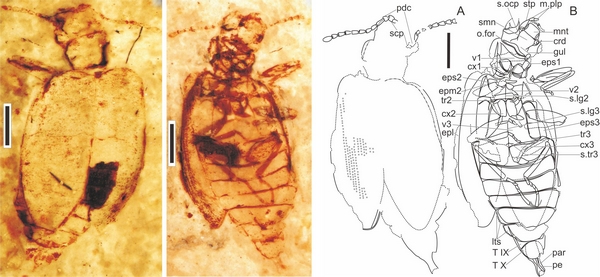 论文信息:Yan E.V., Wang Bo, Ponomarenko A.G., Zhang Haichun (2013) The most mysterious beetles: Jurassic Jurodidae (Insecta: Coleoptera) from northern China. Gondwana Research, doi:10.1016/j.gr.2013.04.002