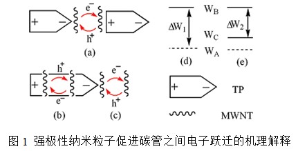 碳纳米管具有优异的力学、电学性能,同时具有密度小、比表面大等优点,在聚合物复合材料的增强、增韧、导电和阻燃等方面发挥着重要作用,在学术和商业领域也引起了广泛关注。近期,中科院合肥物质科学研究院固体物理研究所纳米材料应用研究中心研究人员在碳纳米管材料的应用研究方面取得了进展。研究发现:强极性纳米粒子在降低由覆盖在碳纳米管上的聚合物薄层引起的势垒、促进碳纳米管之间电子跃迁等方面发挥着重要的作用。