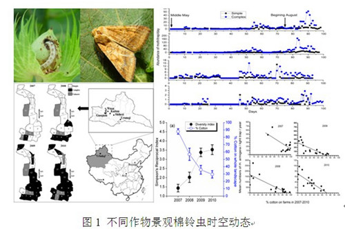 针对棉铃虫对转基因棉花的抗性管理问题,中国科学院新疆生态与地理研究所吕昭智研究员团队在国际科技合作项目“干旱区棉花有害生物生态控制的关键技术及其环境健康”和“西北转基因棉区生物安全评估及避难所建立”的支持下,于2007-2010年监测了北疆不同作物景观棉铃虫种群动态;并评估了不同作物种类和不同种植模式对棉铃虫庇护所功能的影响。