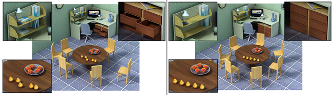 本次发表的第一篇论文是中心黄惠研究员和Andrei Sharf研究员等人的Mobility-Trees for Indoor Scenes Manipulation。近年来,室内场景模型越来越受到大众的普遍关注。随着应用需求的不断增加,室内场景模型的几何特性也越来越细化,功能性也越来越复杂。这些室内场景往往包含了一些以不同姿态展现的重复性物体,它们之间彼此相关。本文创建了一种“运动树”结构来对复杂的3D室内场景进行高层次的功能性表示,通过分析场景中物体的空间排列、重复性以及它们与其他物体间的关系来计算物体的运动性,并将其存储到“运动树”这个全新结构中。同时进一步将场景中具有运动功能的物体组为“运动群”,并为此设计了一整套操作器来加快语义上的高层次室内场景自由编辑操作,应用前景非常广泛。(图1)