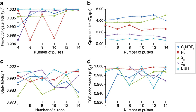 | 图4 在进行量子逻辑门操作的同时,中心电子自旋的相干时间被延长了30倍。 |