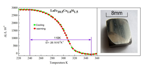 LaFe10.5Co1.0Si1.5材料的热膨胀性能及样品照片
