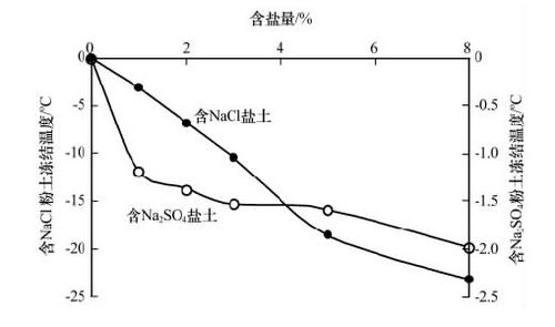 含NaCl粉土和含Na2SO4粉土冻结温度随含盐量的变化