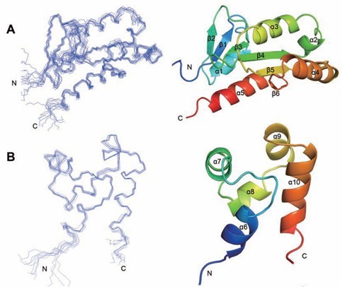 FAAP24蛋白的ERCC4结构域(A)和(HhH)2结构域(B)的三维溶液结构